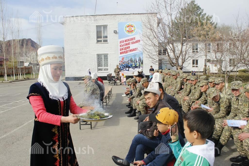 Кара-Көлдөгү №718 аскер бөлүгүндөгү жоокерлер тушоо кесүү жөрөлгөсүн көрсөтүштү (фото)