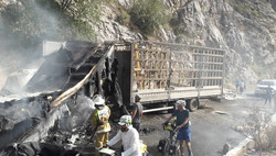 Бишкек—Ош жолунда жүк ташуучу «Вольво» унаасы өрттөнүп кетти. Сүрөт