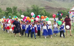 Кара-Көлдө 20 жылдык бүтүрүүчүлөр мектепке окуу эмеректерин белек кылышты