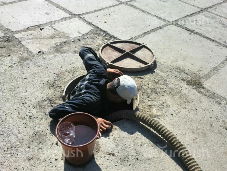 В городе Кара-Куль проводится очистка колодцев и высасывание канализационных вод (фото)